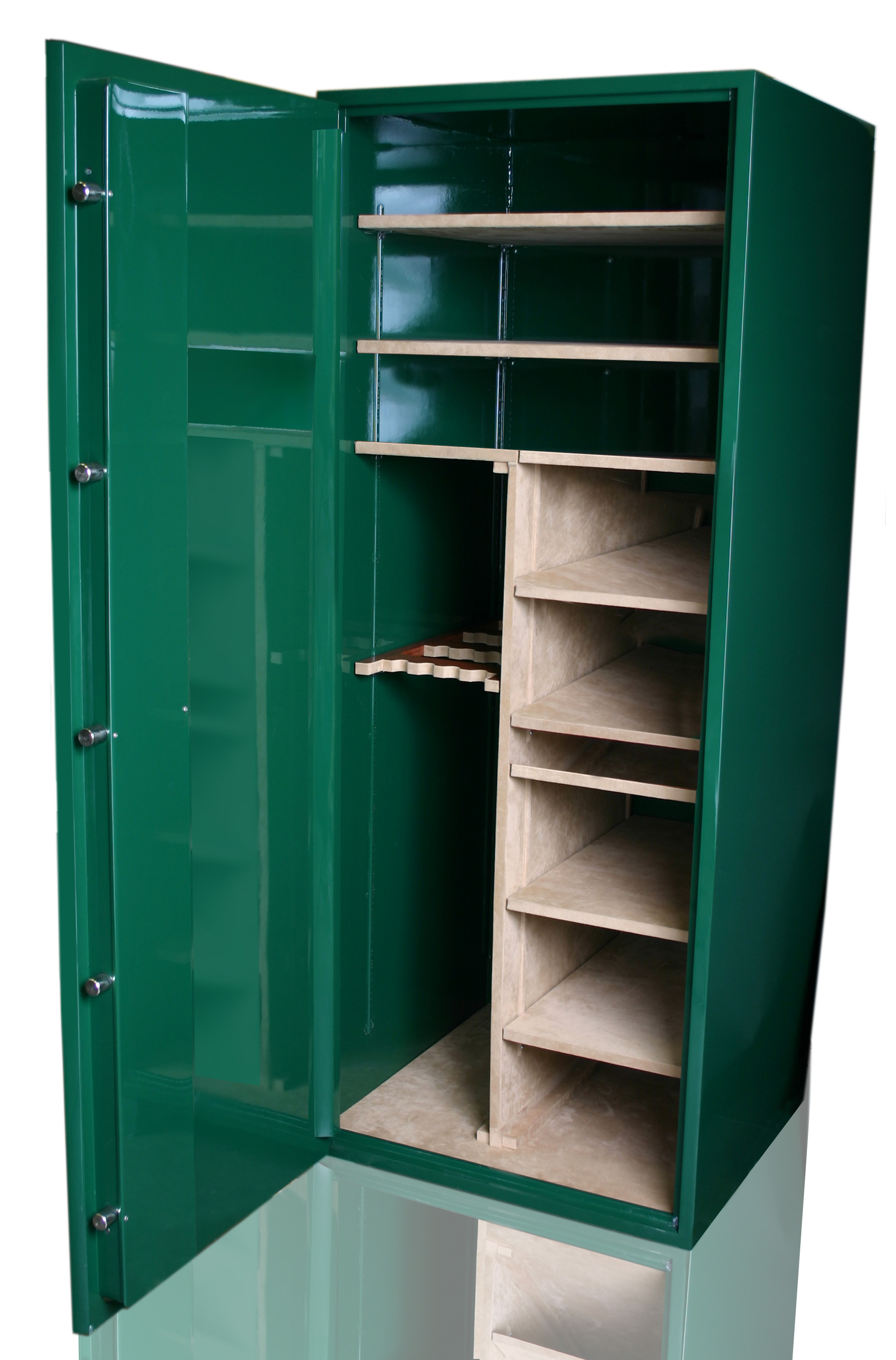 Image Description: Estate 7228 B package E in Forest Green with Sand Ultrasuede interior and no Jewelry Drawers.